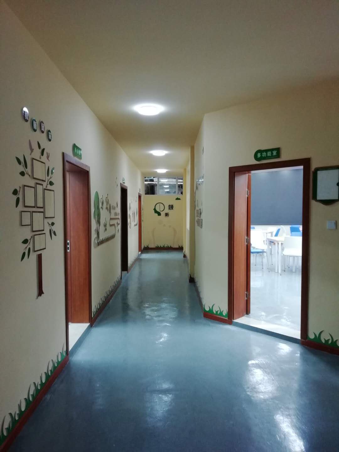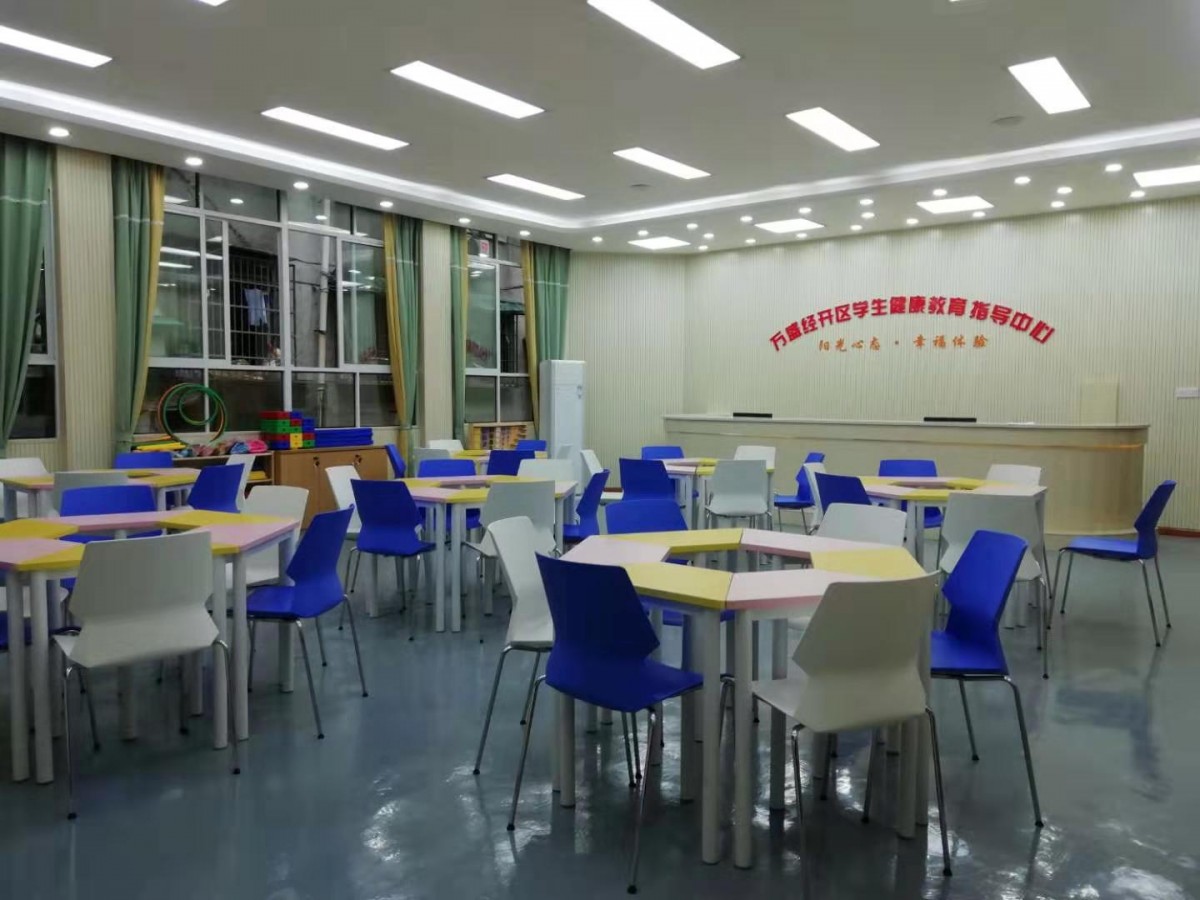 重慶市萬盛區教師進修校心理咨詢室整體打造項目完工,專業的心理輔導設備。簡潔大方的桌椅款式,配以暖色系色彩。濃厚的走廊心理文化氛圍。讓整個中心更加溫馨!